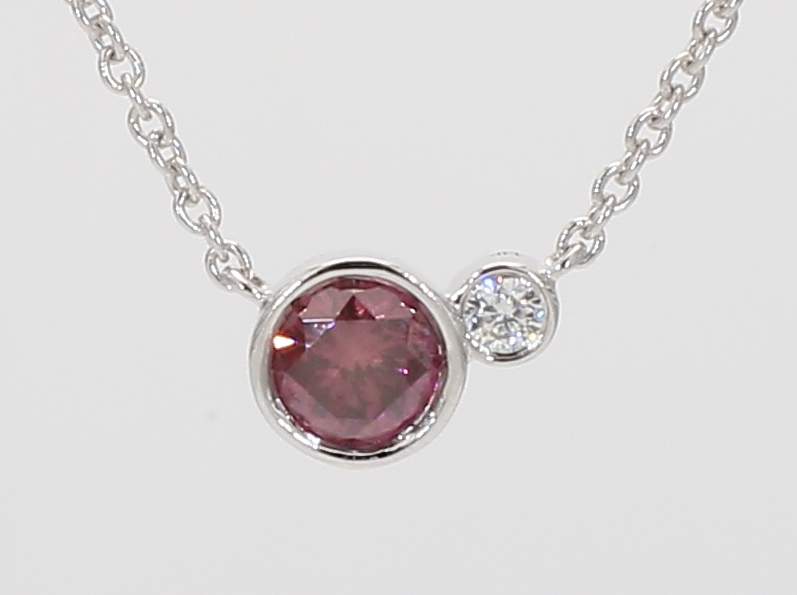 ROUND FANCY DEEP GRAYISH PINK-PURPLE HPHT DIAMOND GIA 5141309432 & ROUND DIAMOND 14KW NECKLACE