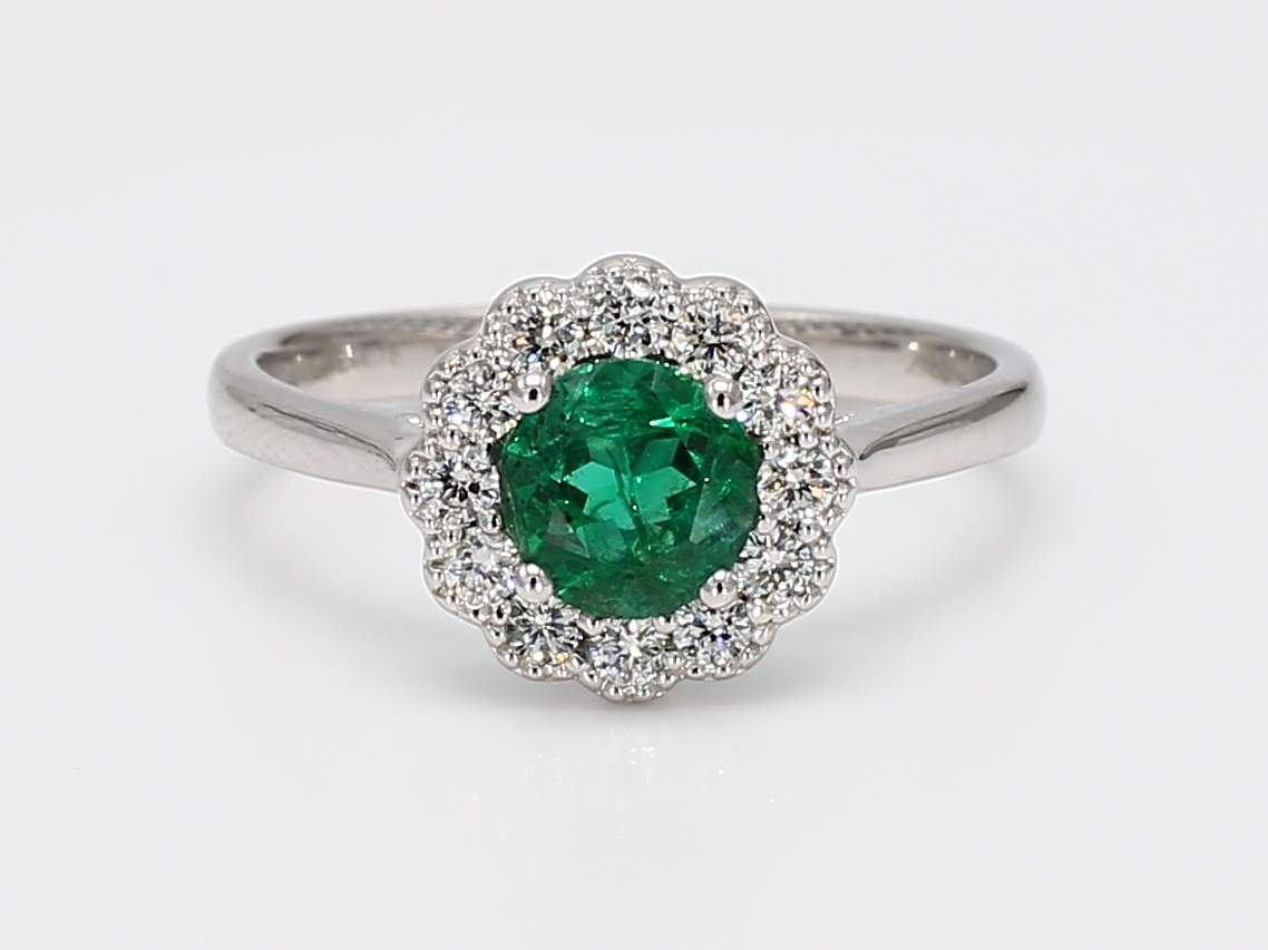 ROUND EMERALD & ROUND DIAMOND 14KW RING