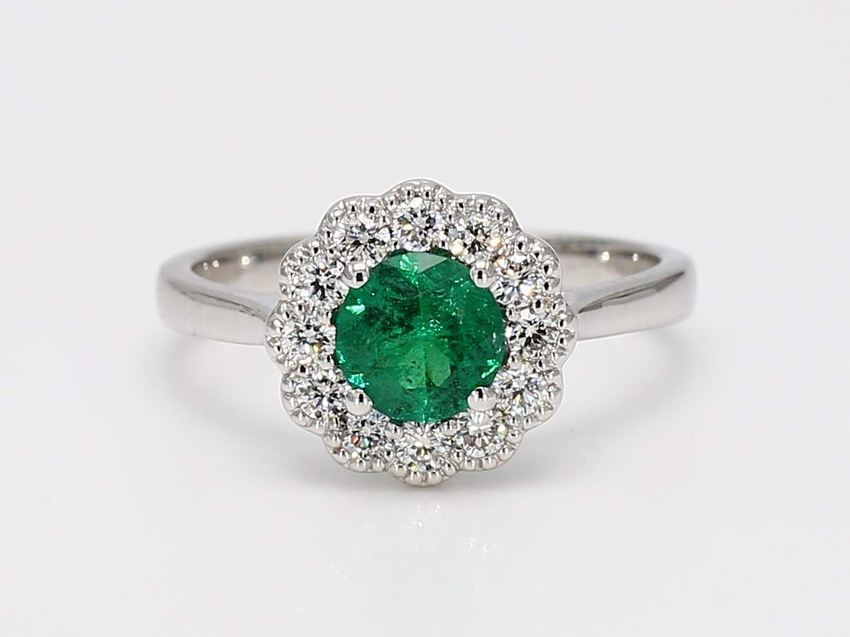 ROUND EMERALD & ROUND DIAMOND 14KW RING