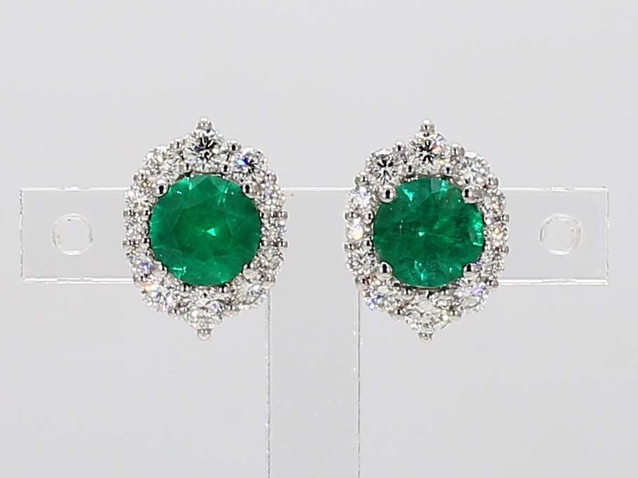 ROUND EMERALD & ROUND DIAMOND 18KW EARRING