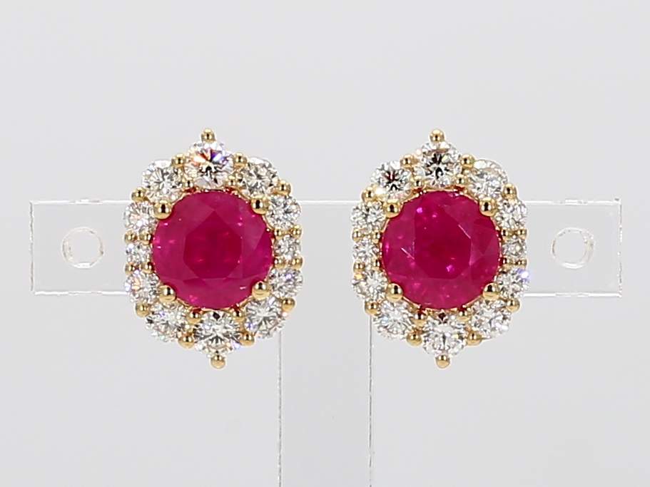 ROUND RUBY & ROUND DIAMOND 18KY EARRING