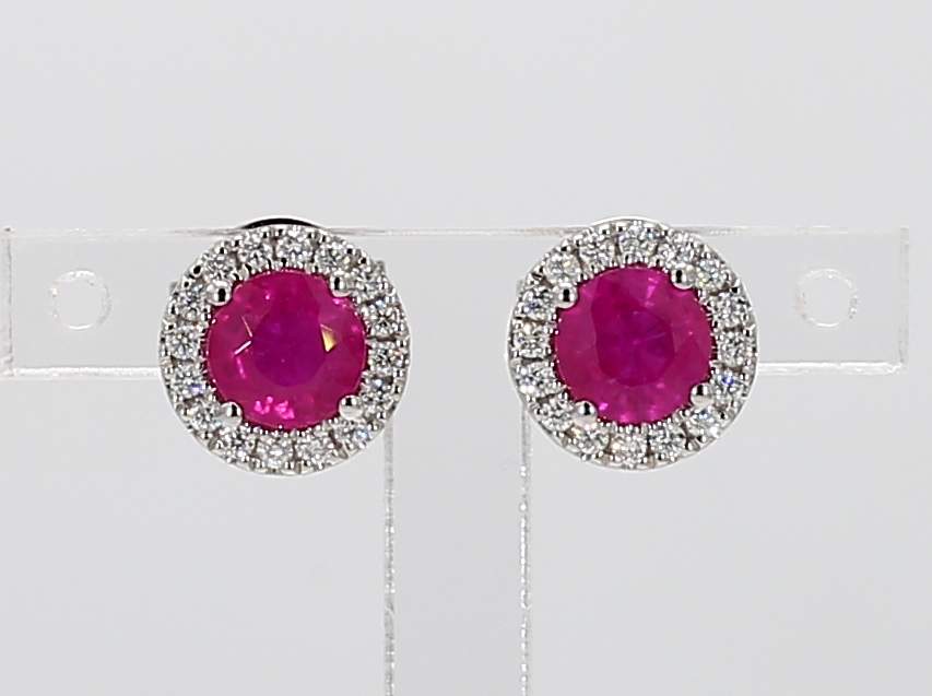 ROUND RUBY & ROUND DIAMOND 14KW EARRING