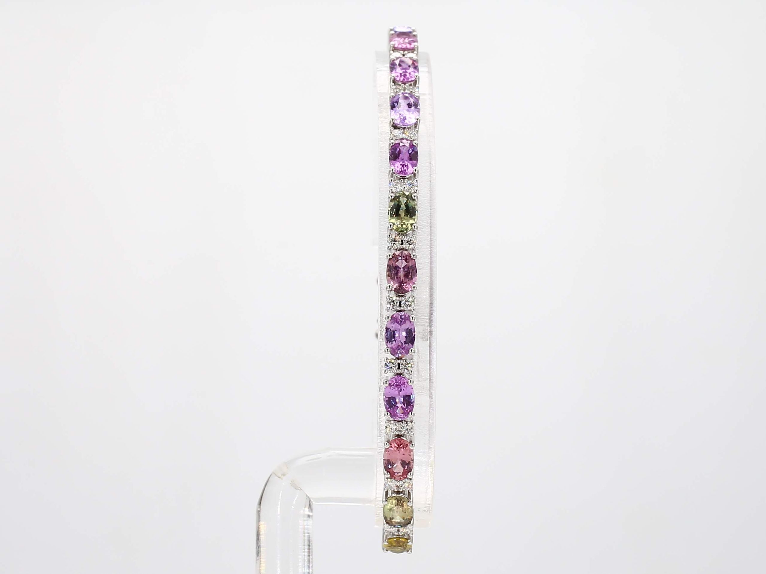 OVAL UNHEATED MULTICOLOR SAPPHIRE & ROUND DIAMOND 14KW BRACELET
