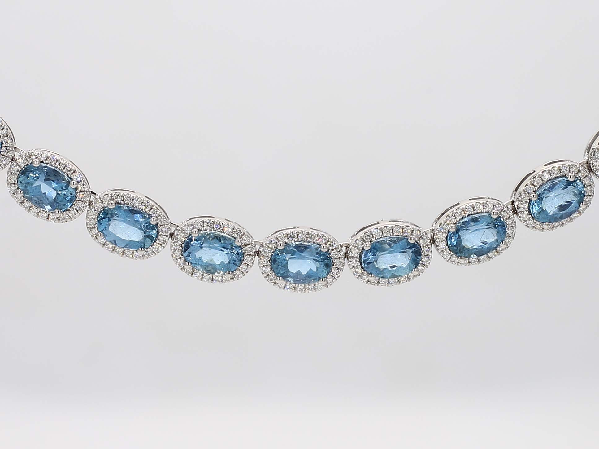 OVAL AQUAMARINE & ROUND DIAMOND 14KW NECKLACE