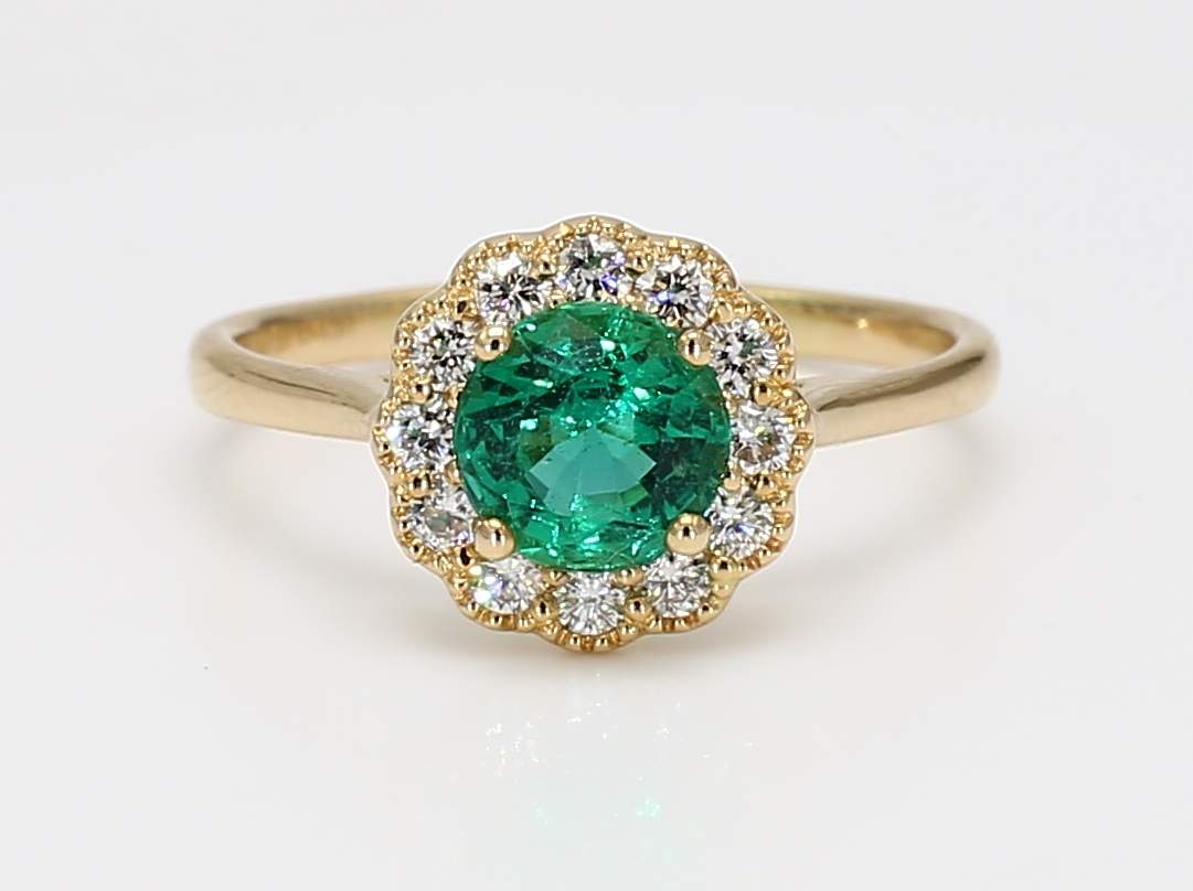 ROUND EMERALD & ROUND DIAMOND 14KY RING