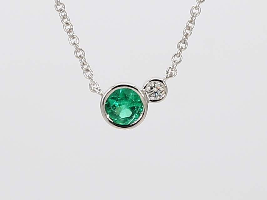 ROUND EMERALD & ROUND DIAMOND 14KW NECKLACE