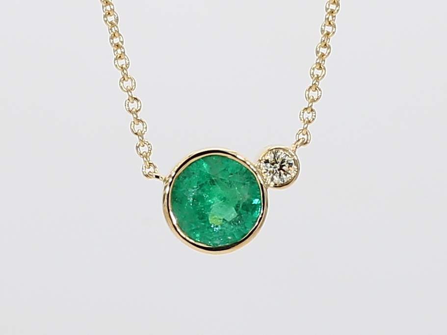ROUND EMERALD & ROUND DIAMOND 14KY NECKLACE