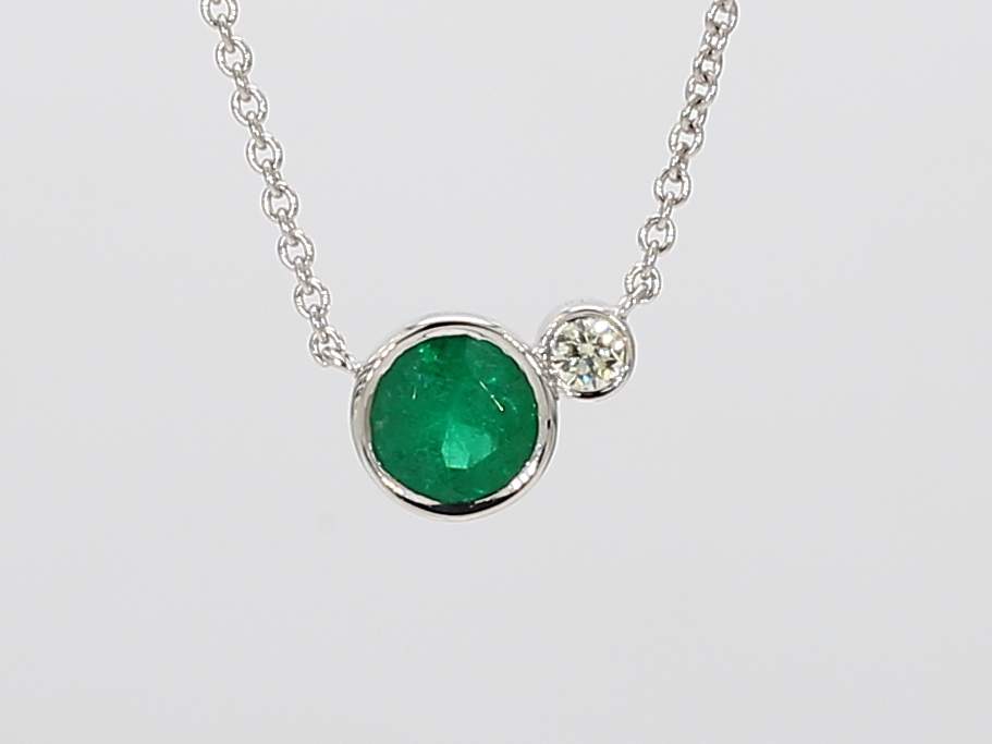 ROUND EMERALD & ROUND DIAMOND 14KW NECKLACE