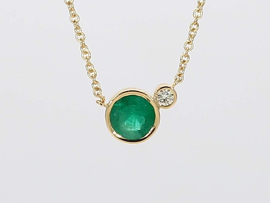 ROUND EMERALD & ROUND DIAMOND 14KY NECKLACE