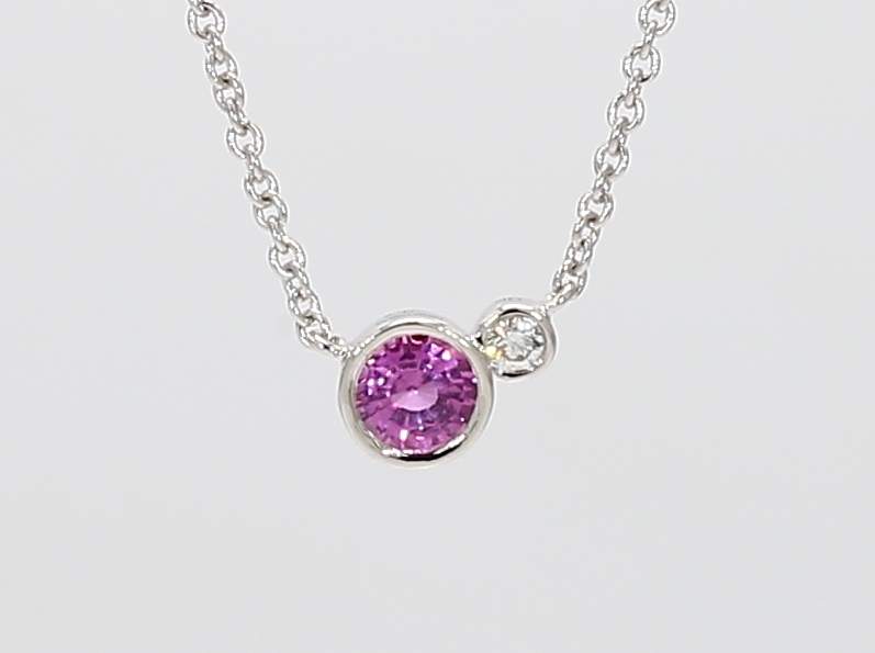 ROUND PINK SAPPHIRE & ROUND DIAMOND 14KW NECKLACE