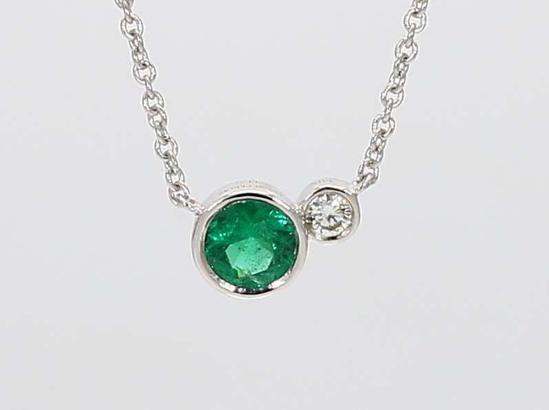 ROUND EMERALD & ROUND DIAMOND 14KW NECKLACE