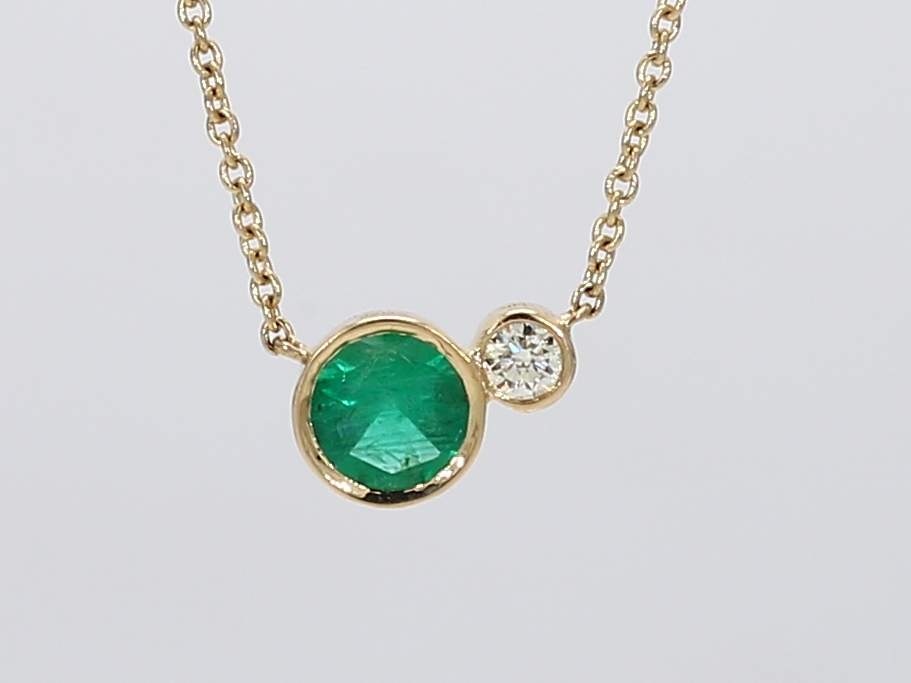 ROUND EMERALD & ROUND DIAMOND 14KY NECKLACE
