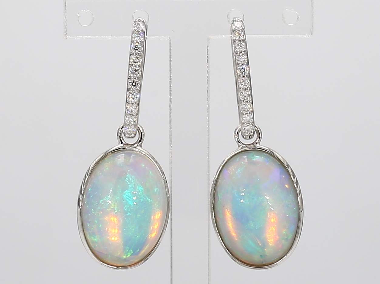 OVAL OPAL & ROUND DIAMOND 14KW EARRING
