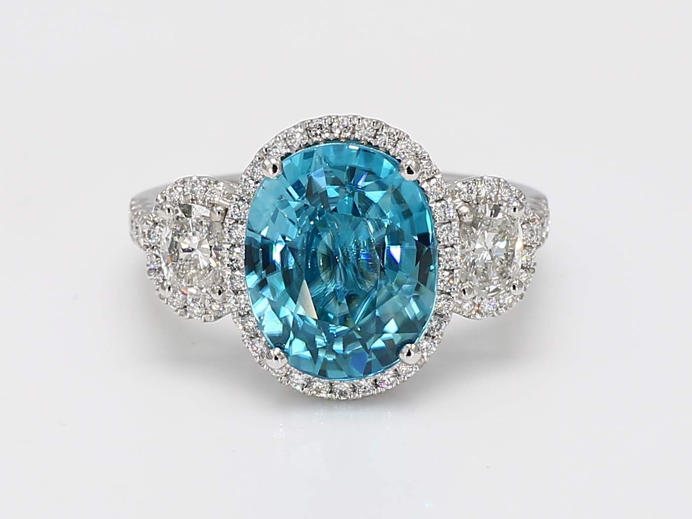 OVAL ZIRCON & OVAL & ROUND DIAMOND PLATINUM RING