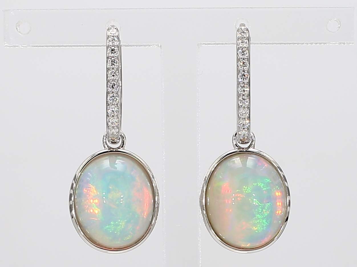 OVAL OPAL & ROUND DIAMOND 14KW EARRING