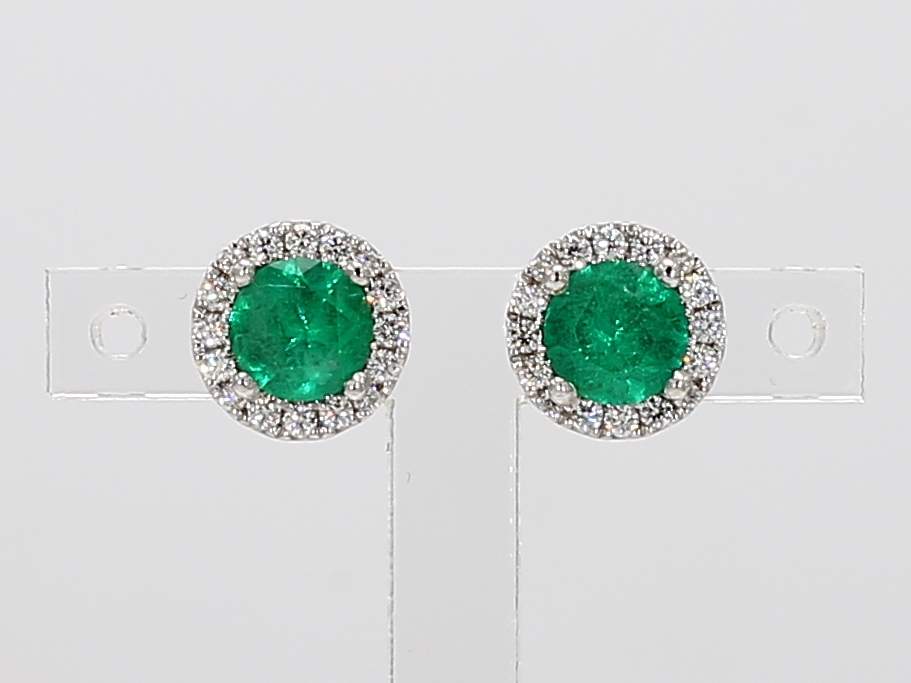 ROUND EMERALD & ROUND DIAMOND 18KW EARRING