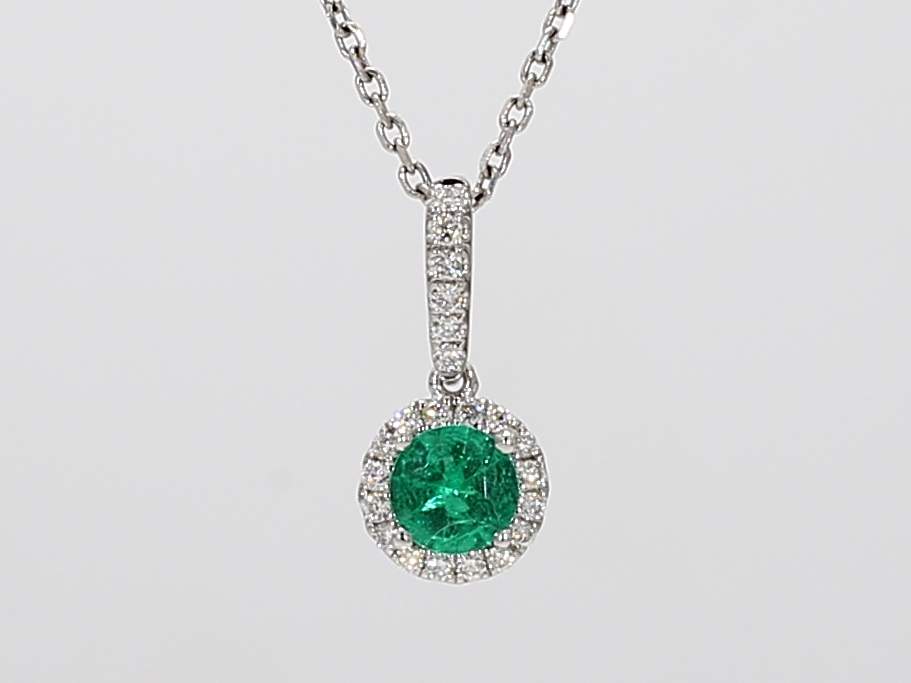 ROUND EMERALD & ROUND DIAMOND 14KW PENDANT
