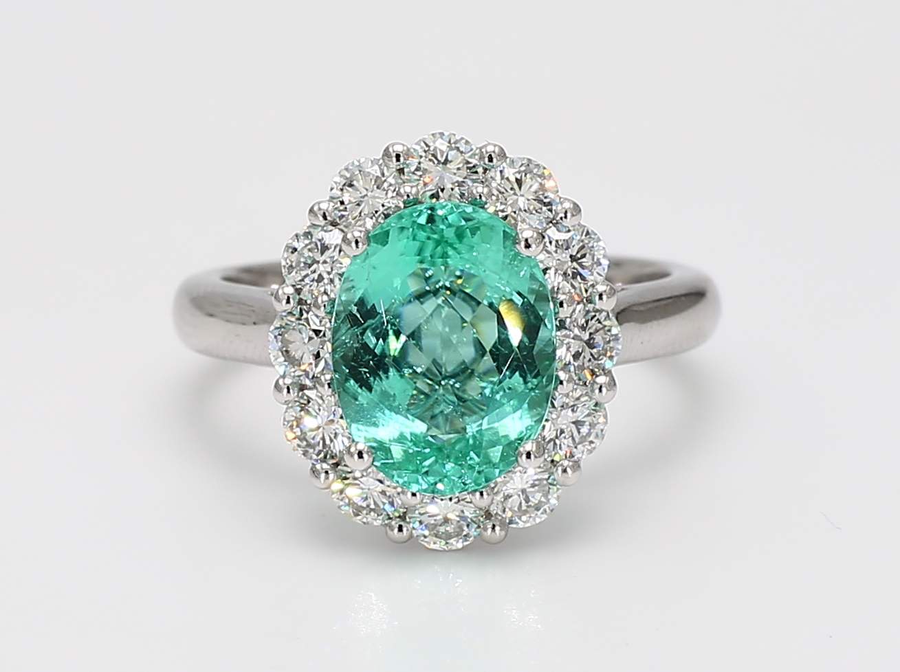OVAL PARAIBA TOURMALINE & ROUND DIAMOND PLATINUM RING