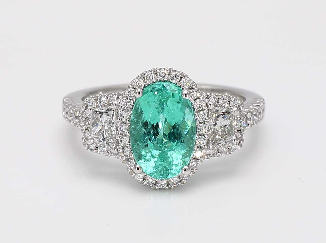 OVAL PARAIBA TOURMALINE GIA 2231401763 & TRAPEZOID DIAMOND PLATINUM RING