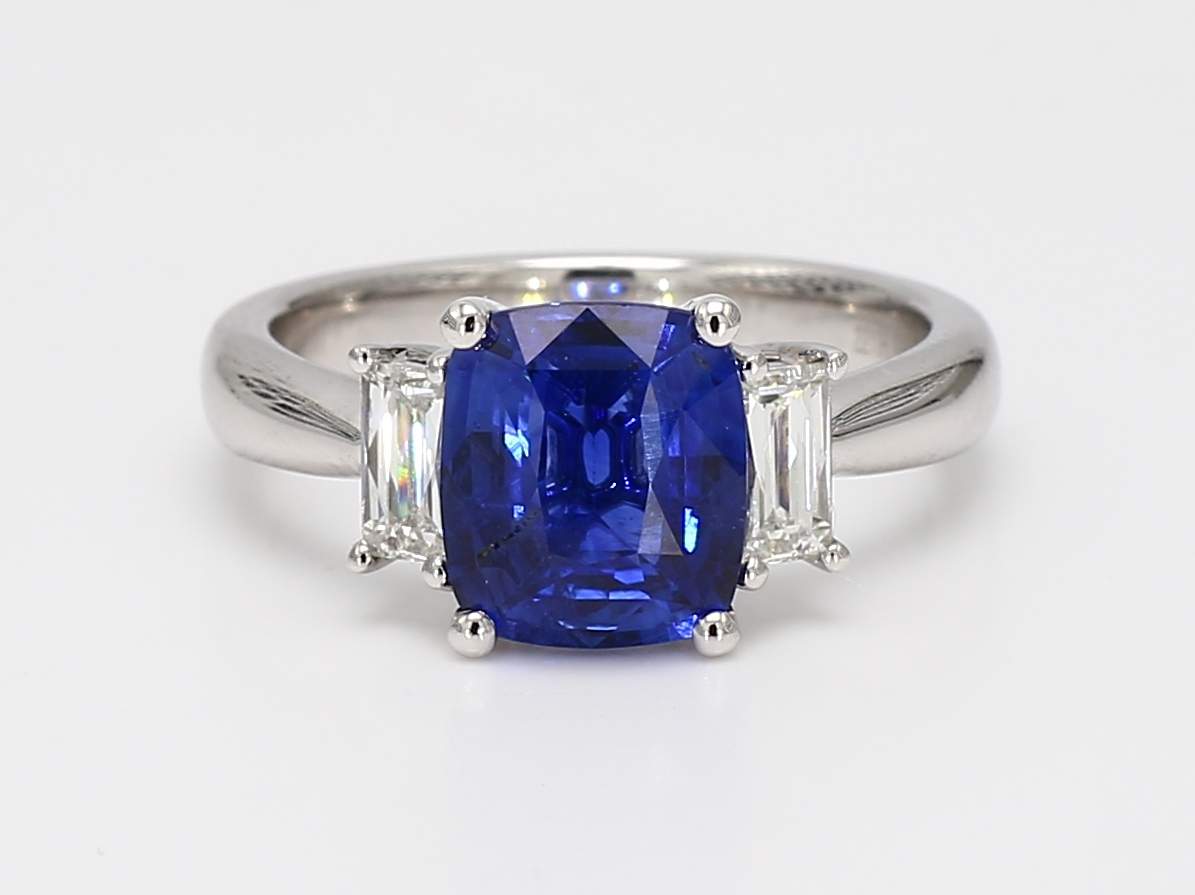 CUSHION SAPPHIRE & BAGUETTE DIAMOND PLATINUM RING
