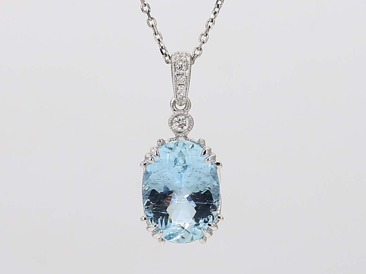 OVAL AQUAMARINE & ROUND DIAMOND 14KW PENDANT