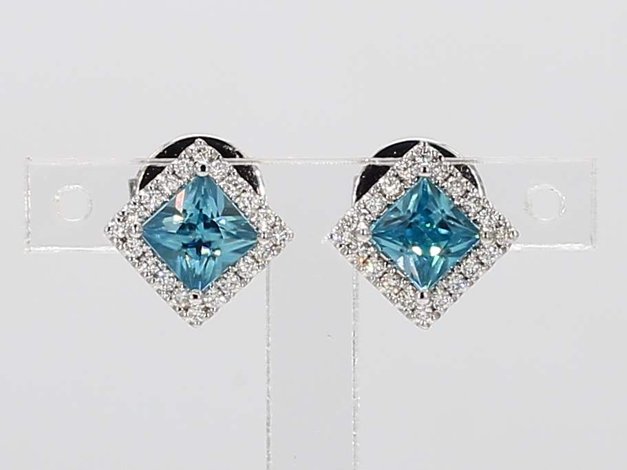 PRINCESS CUT ZIRCON & ROUND DIAMOND 14KW EARRING