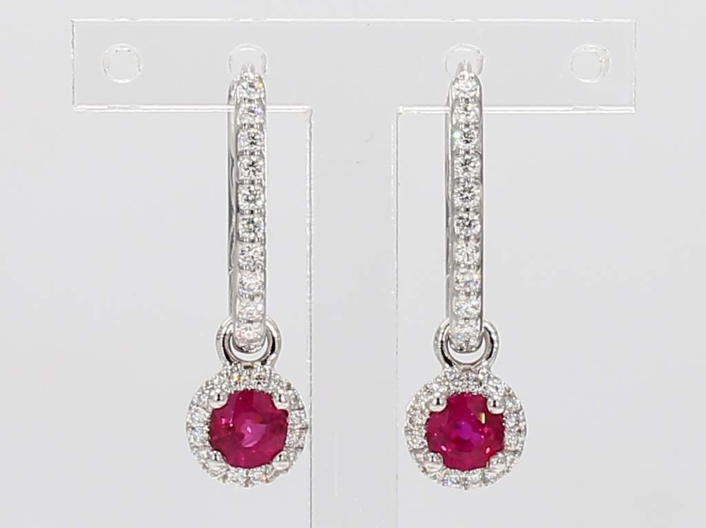 ROUND RUBY & ROUND DIAMOND 14KW EARRING