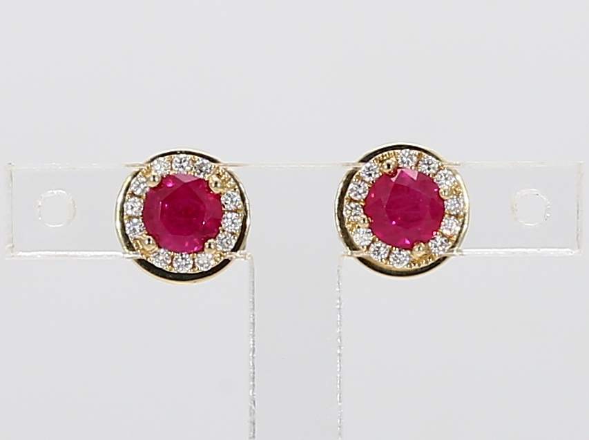 ROUND RUBY & ROUND DIAMOND 14KY EARRING