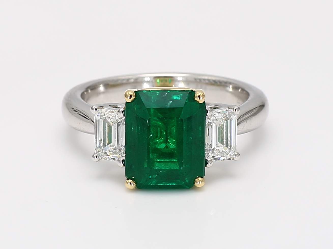 EMERALD CUT EMERALD VIVID GREEN MINOR CDC 2405996 & EMERALD CUT DIAMOND E IF GIA 6482512675 & 2477780254 PLATINUM RING