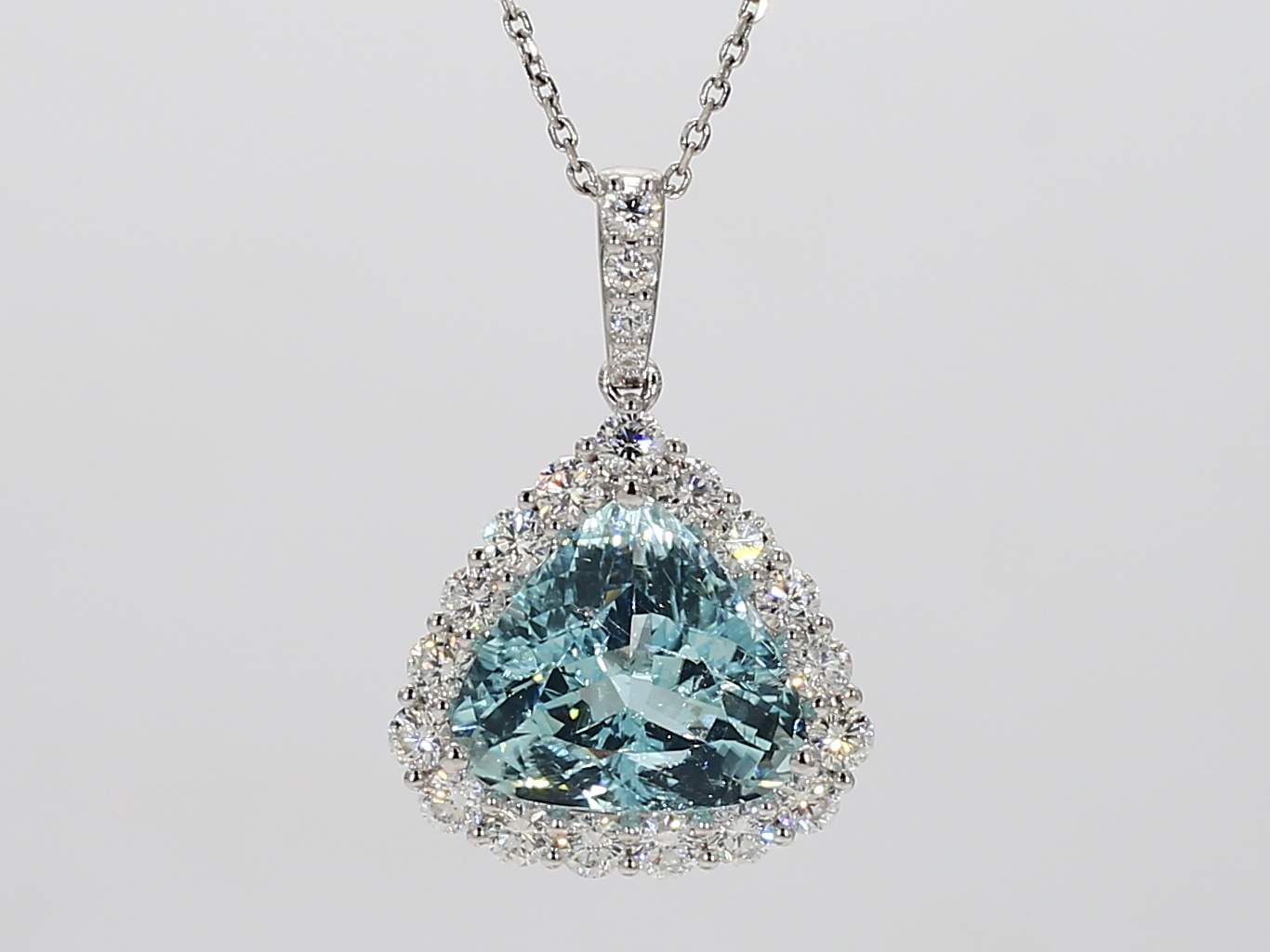 TRILLION PARAIBA TOURMALINE GIA 2231319048 & ROUND DIAMOND 18KW PENDANT