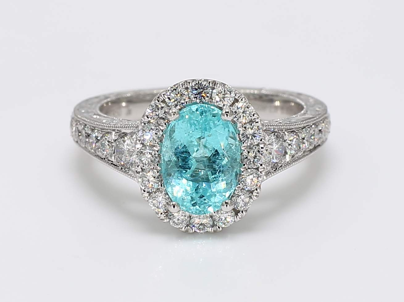 OVAL PARAIBA TOURMALINE GIA 2235401712 & ROUND DIAMOND PLATINUM RING