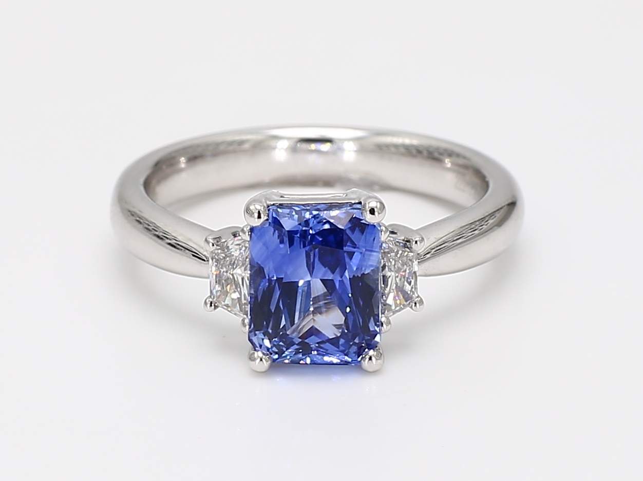 RADIANT SAPPHIRE & TRAPEZOID DIAMOND PLATINUM RING