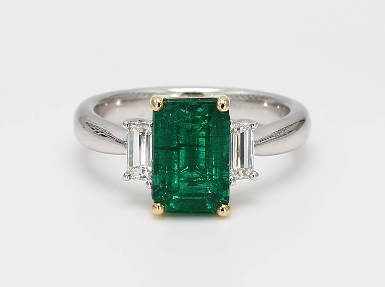 EMERALD CUT EMERALD & EMERALD CUT DIAMOND PLATINUM RING