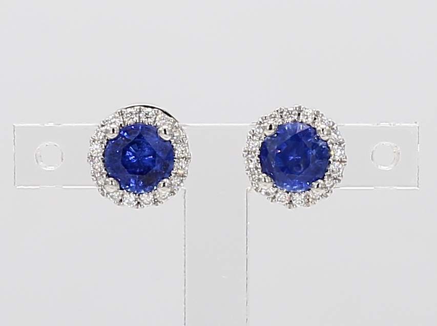 ROUND SAPPHIRE & ROUND DIAMOND 14KW EARRING