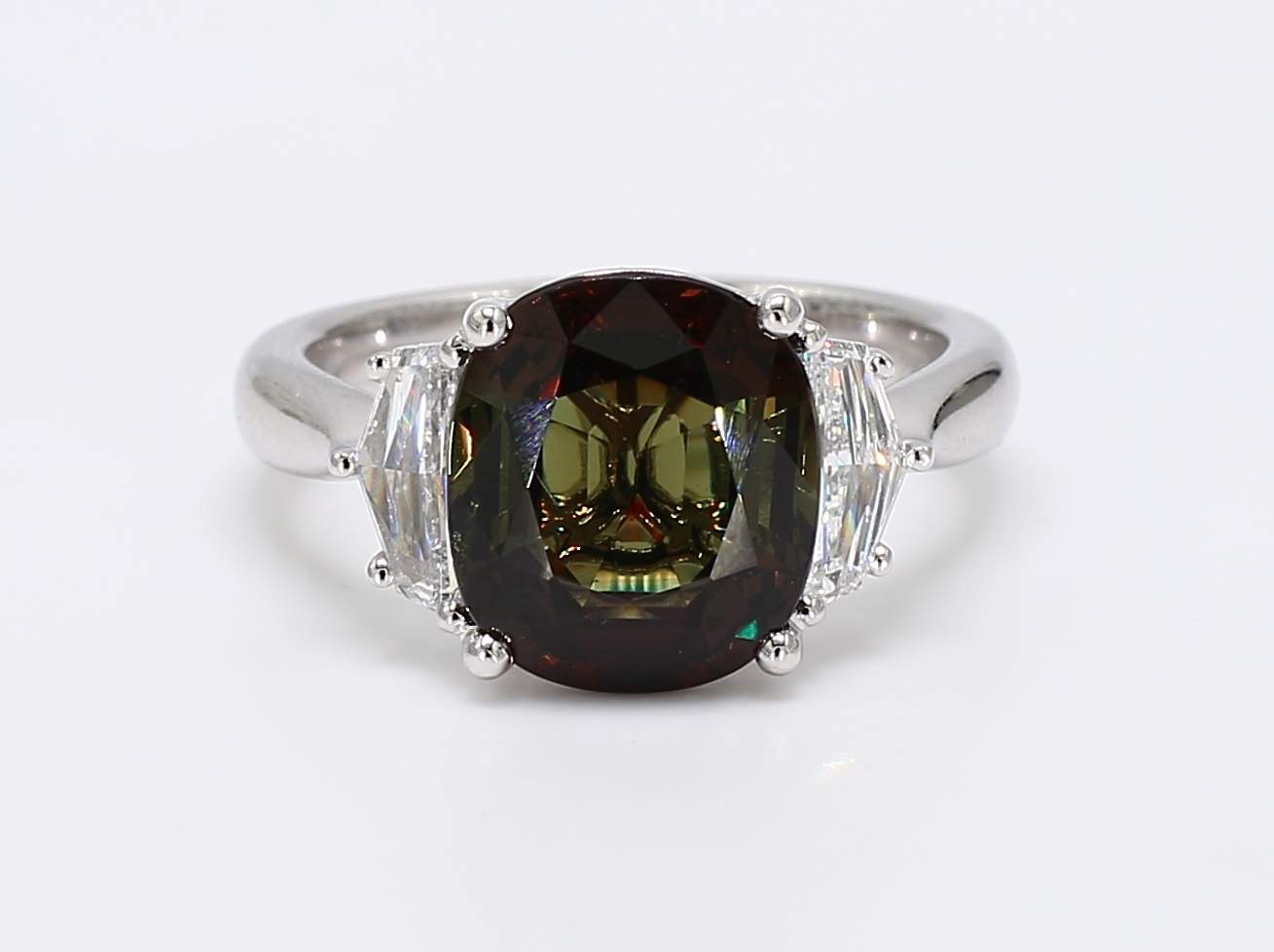 CUSHION ALEXANDRITE GIA 6223713919 & EPAULETTE DIAMOND PLATINUM RING