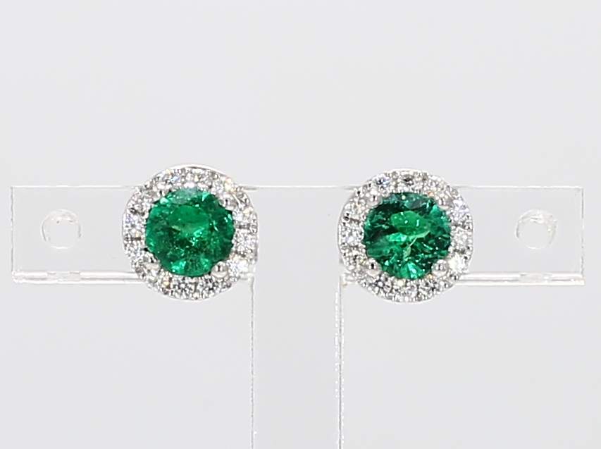 ROUND EMERALD & ROUND DIAMOND 18KW EARRING