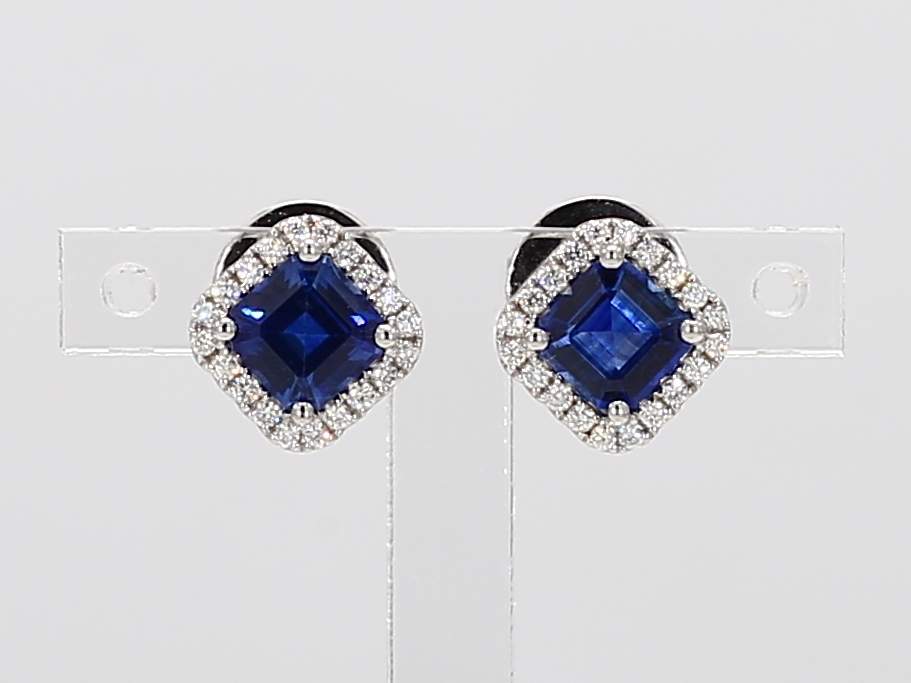 SQUARE EMERALD CUT SAPPHIRE & ROUND DIAMOND 18KW EARRING