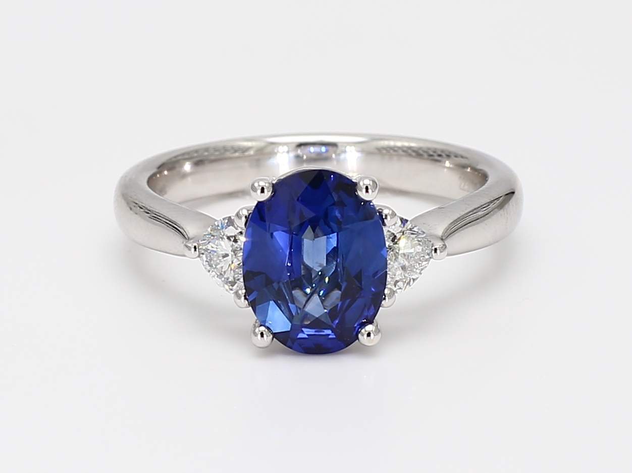 OVAL SAPPHIRE & HEART SHAPE DIAMOND 14KW RING