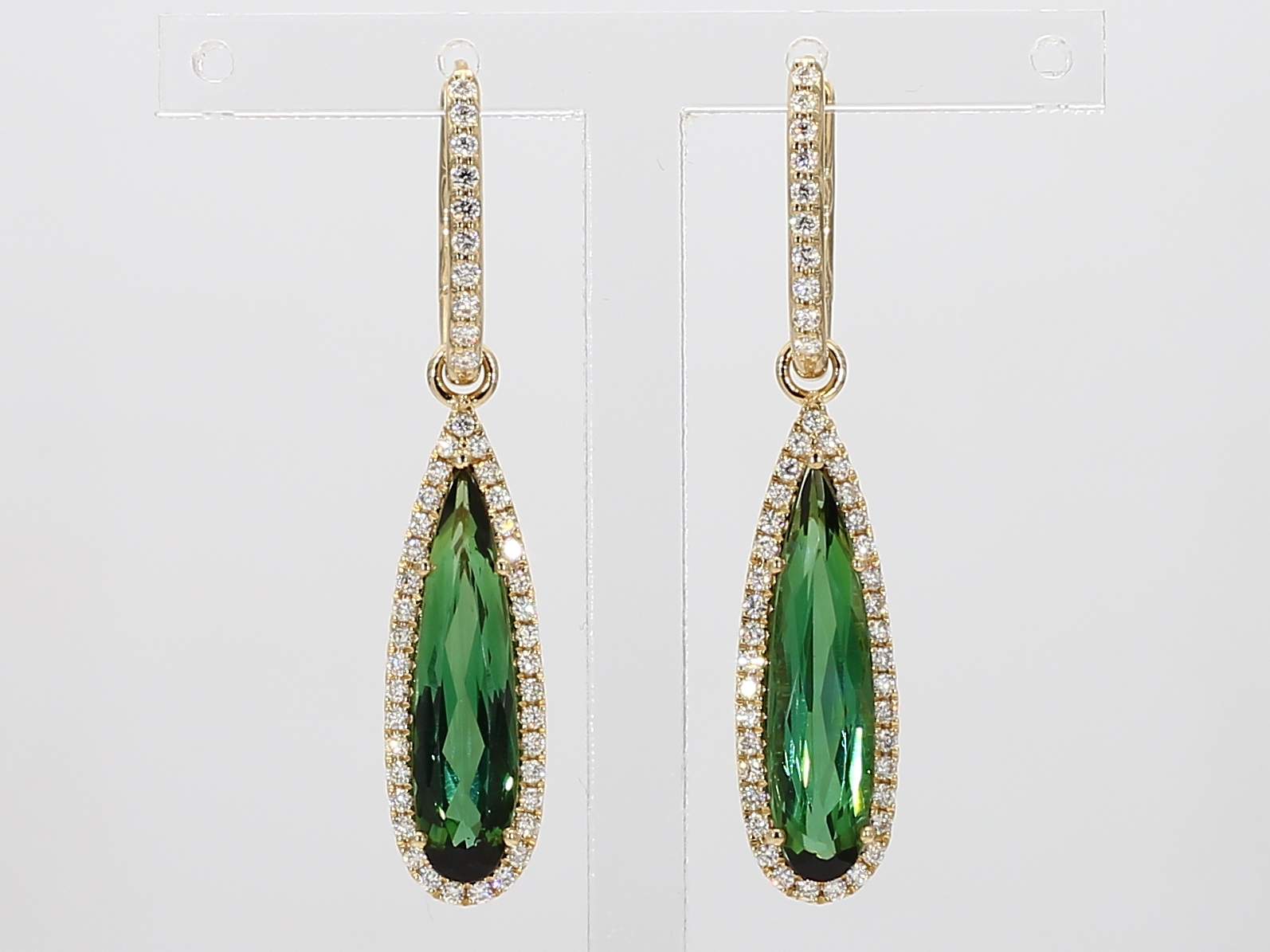PEAR SHAPE GREEN TOURMALINE & ROUND DIAMOND 14KY EARRING