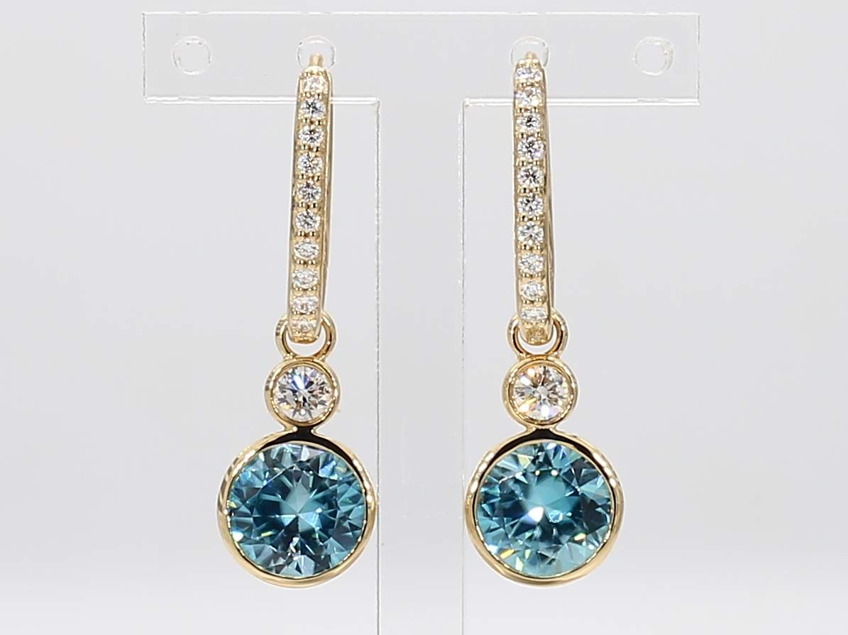 ROUND ZIRCON & ROUND DIAMOND 14KY EARRING