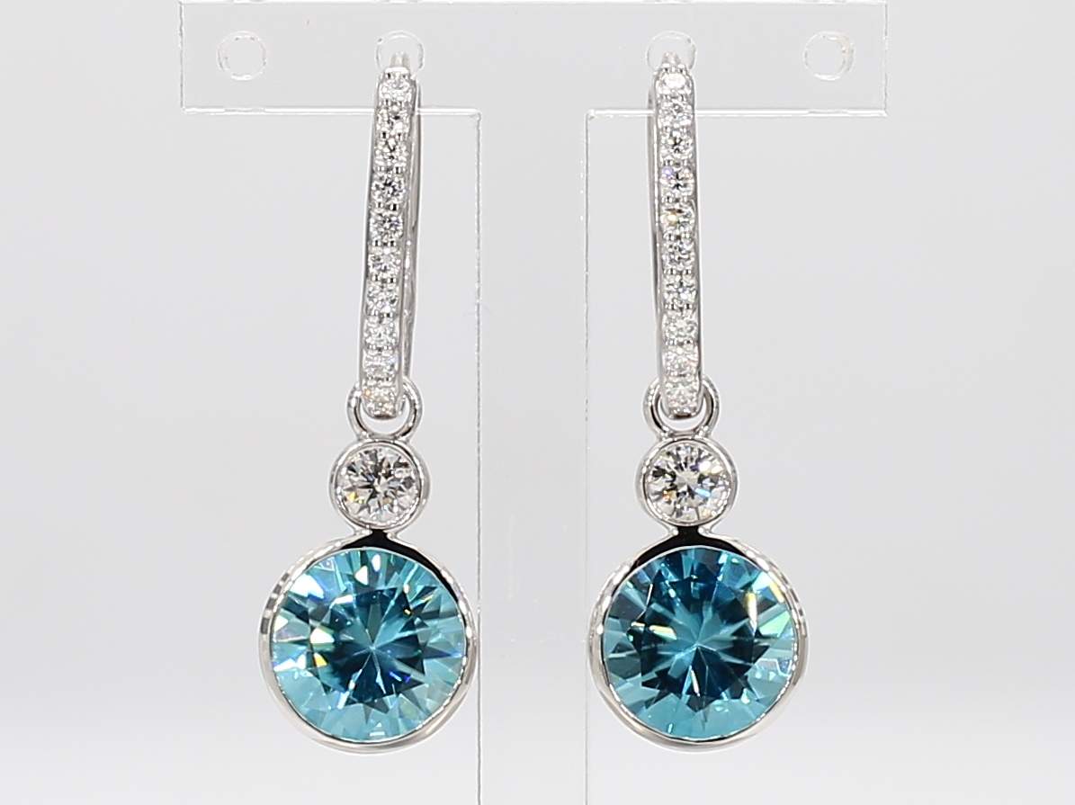 ROUND ZIRCON & ROUND DIAMOND 14KW EARRING