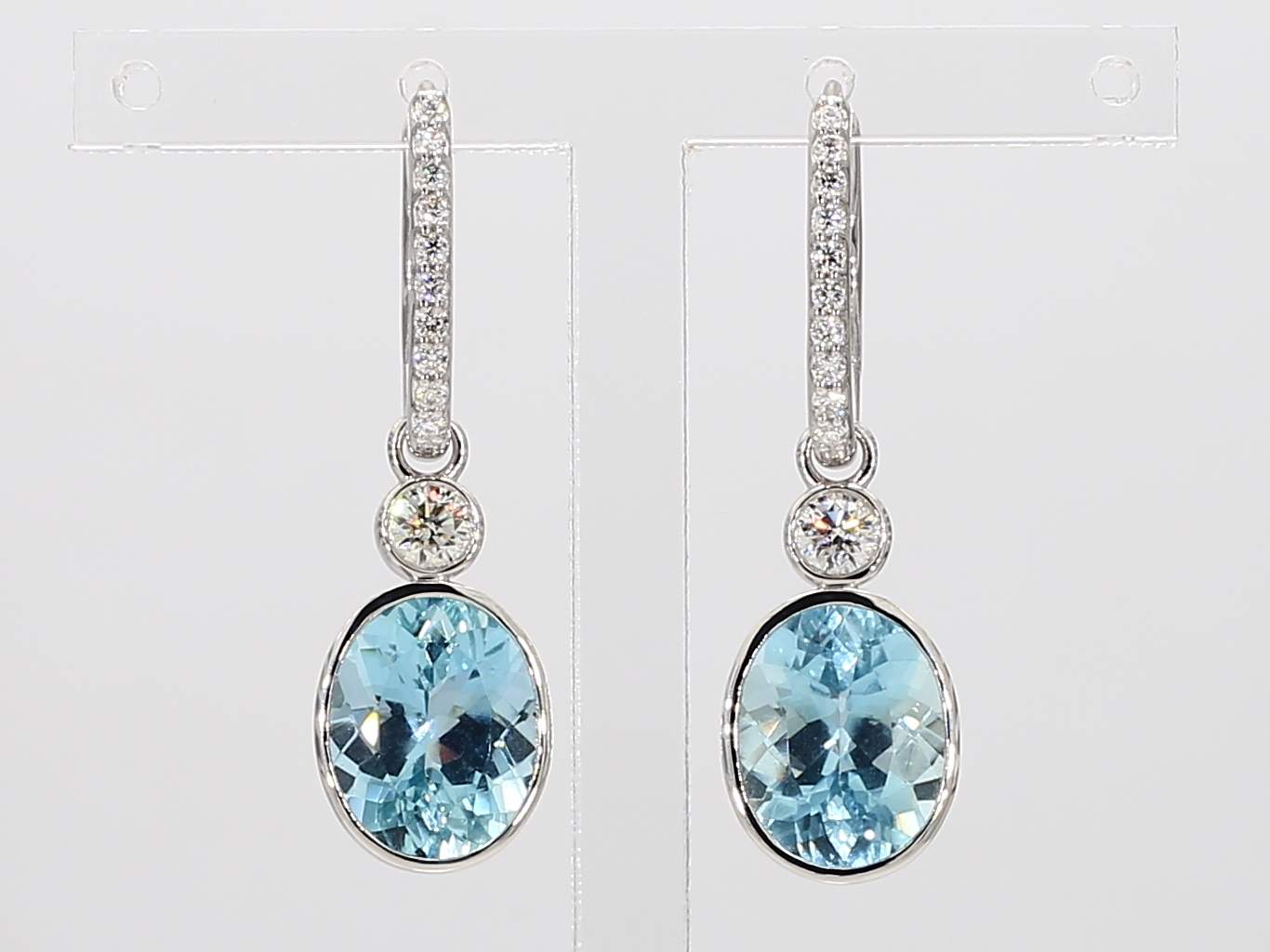 OVAL AQUAMARINE & ROUND DIAMOND 14KW EARRING