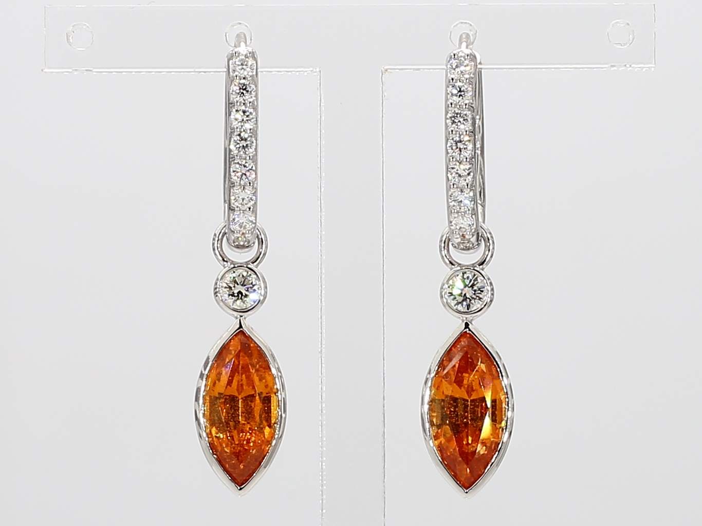MARQUISE MANDARIN GARNET & ROUND DIAMOND 14KW EARRING