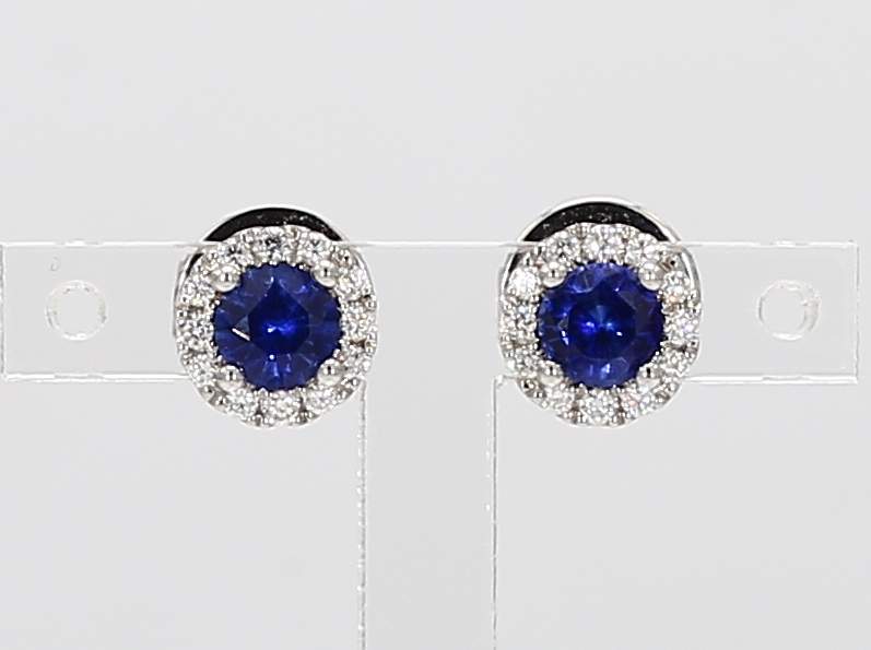 ROUND SAPPHIRE & ROUND DIAMOND 14KW EARRING