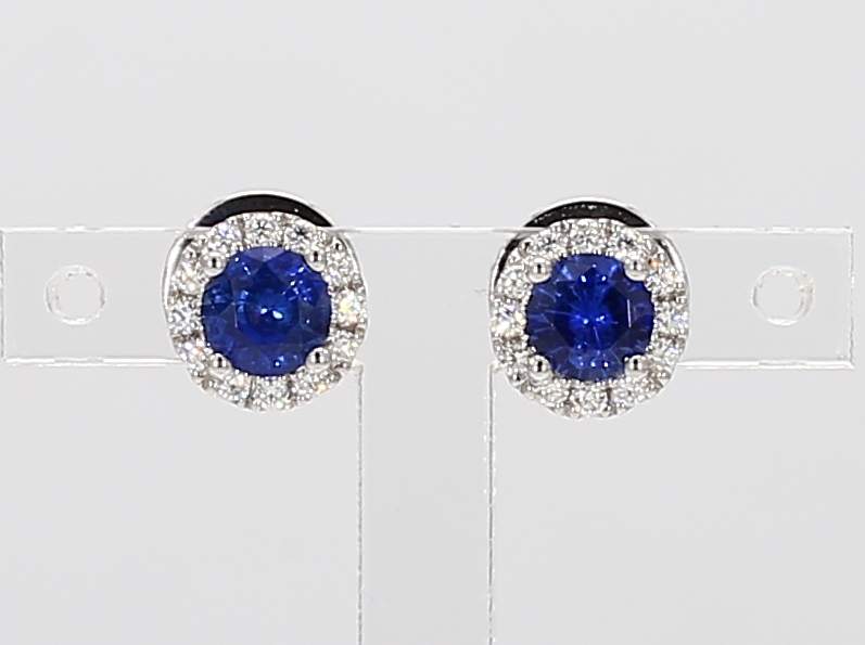 ROUND SAPPHIRE & ROUND DIAMOND 14KW EARRING