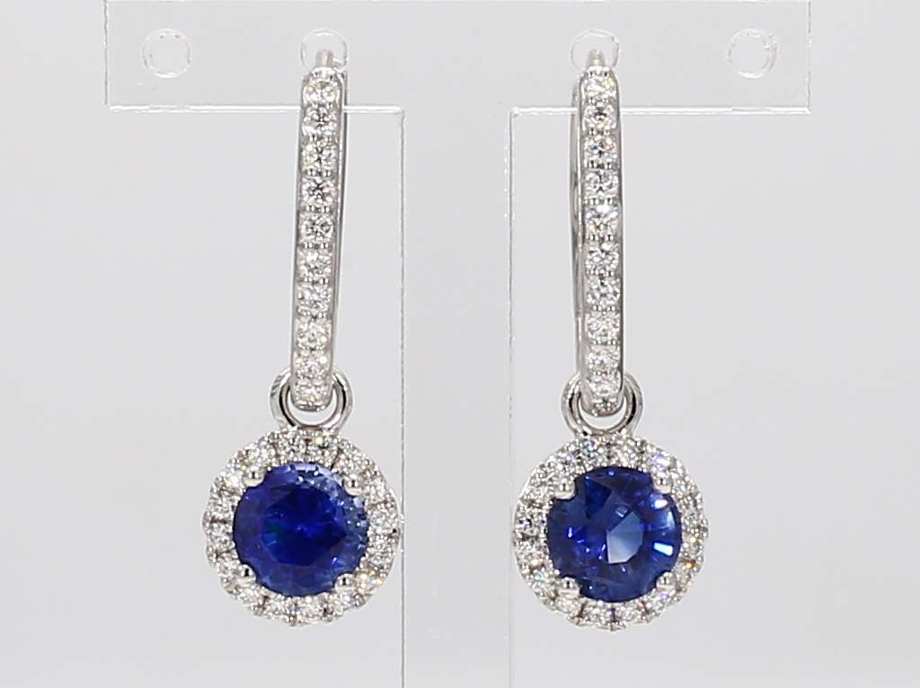 ROUND SAPPHIRE & ROUND DIAMOND 14KW EARRING
