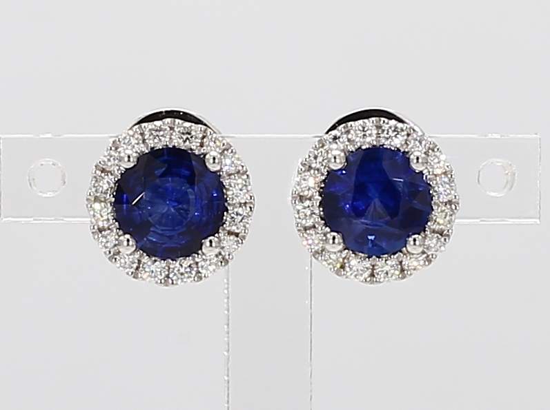 ROUND SAPPHIRE & ROUND DIAMOND 18KW EARRING