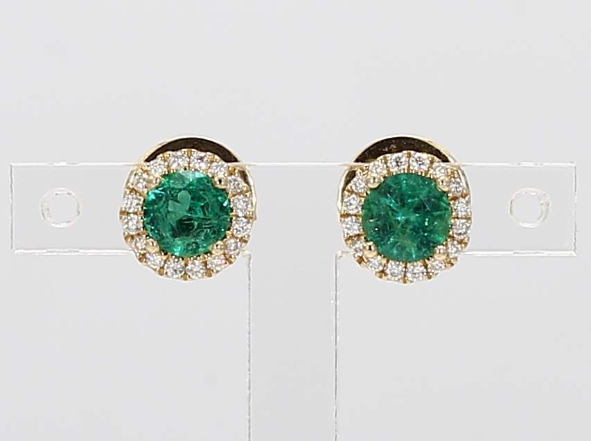 ROUND EMERALD & ROUND DIAMOND 14KY EARRING