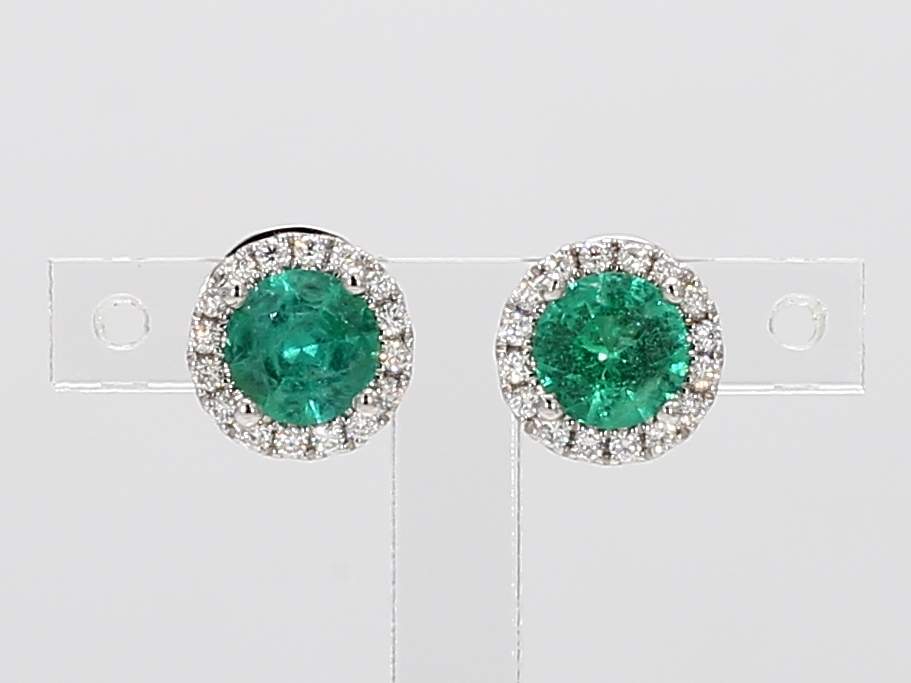ROUND EMERALD & ROUND DIAMOND 14KW EARRING