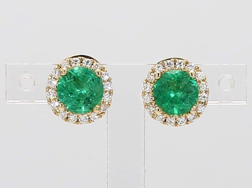 ROUND EMERALD & ROUND DIAMOND 14KY EARRING